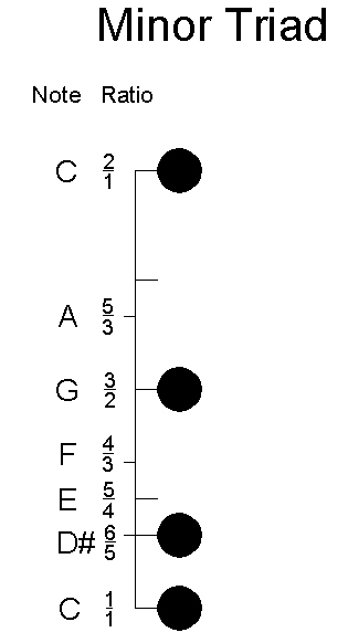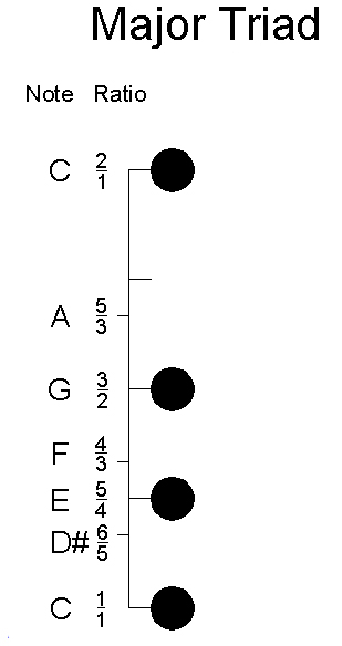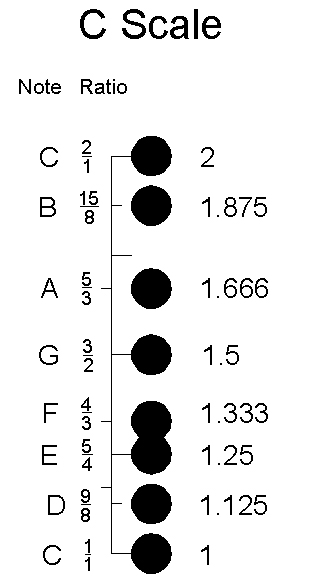 * The more perfect we wish a musical scale to be, the more limited it must be in depth. I have found that all the notes of a pentatonic major scale of C(1/1), E(5/4), F(4/3), G(3/2), A(5/3) are sufficiently perfect in their ratios to all other notes of the scale. Similarly there is a perfect pentatonic minor scale, E(1/1), G(6/5), A(4/3), B(3/2), C(8/5). The inclusion of more notes into either pentatonic scale, though, would begin to introduce significant imperfections. However, the significance of the mathematical imperfections is relatively small and easy for listeners to ignore. To the human mind, the benefits of increased musical complexity generally outweigh the imperfections of complex scales.