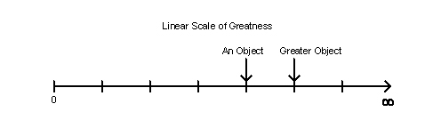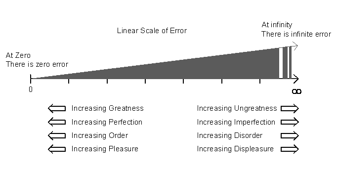 However, as with many situations in life, there is an inverse way to view this. We could say the thing is positioned on the scale closer to infinity by how "great" it is. We could also say the thing is also be positioned closer to 0 by how "ungreat" it is. Naturally, the if the properties of music are not perfect, this creates the opposite of pleasure, a displeasure.