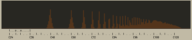 Knowing that the human ear is capable of frequency separation, and that harmonics are a phenomenon of real world instruments, you have enough information to understand a second fundamental problem in music. While the most beautiful combinations of tones are in ratios such as a 2/1, 5/4, and 3/2, you can see that many of the tones even a single string produces do not fall in the ratios of an ideal chord. However, most listeners do not notice this because the good fundamental harmonics are the loudest and most prominent. But, upon closer investigation, the reality can be heard. After the first few harmonics of a C note, there are Ds, Bs and harmonics that do not even fall on notes of the scale. The symmetry of this wave is thus slightly confused. Its beauty is ironically marred by the richness of its harmonic content. The notes of real world musical instruments are more perfect than most earthly sounds, but there can be no doubt that they are fundamentally imperfect.