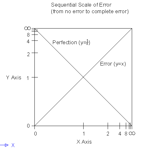 I've graphed the error f[x]=x and its inverse, the perfection f[x]=1/x